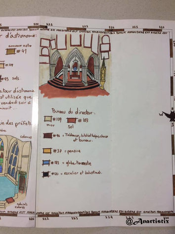 Donc j’ai choisi de porter mon dossier sur de nouvelles pièces pour les studios #Harry Potter à Londres. Le principe de base était de constituer un dossier explicatif puis de dessiner des croquis à main levée de plusieurs pièces et enfin une finale “au propre”.